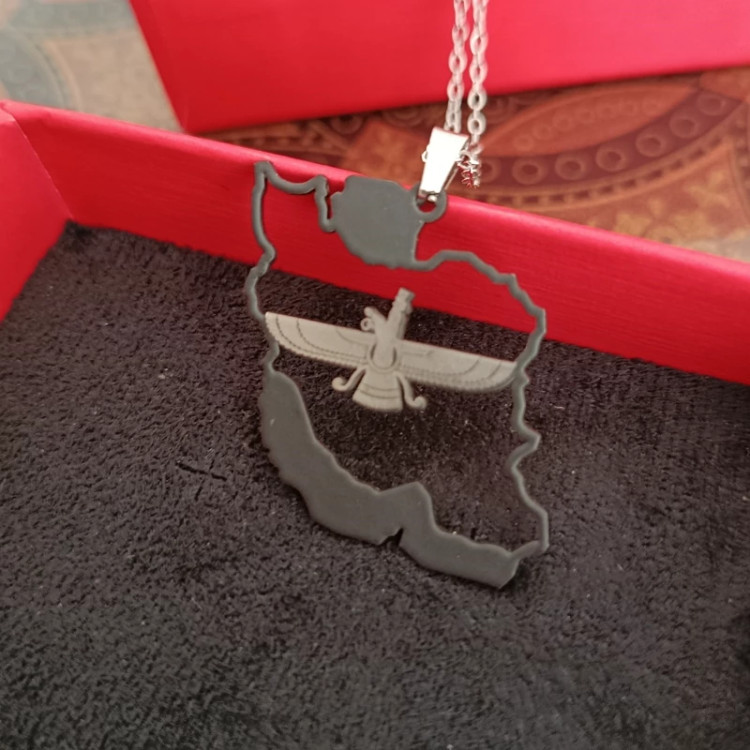 گردنبند مردانه مدل فروهر نقشه ایران رنگ ثابت