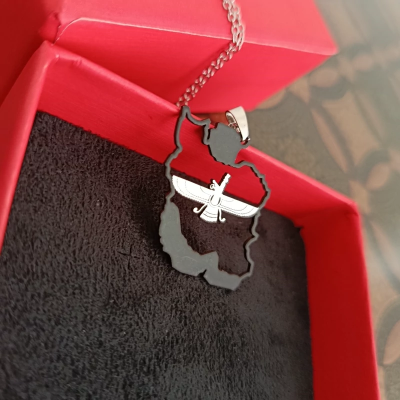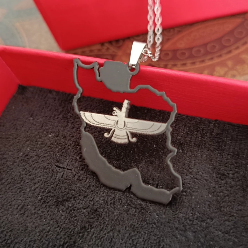 گردنبند مردانه مدل فروهر نقشه ایران رنگ ثابت