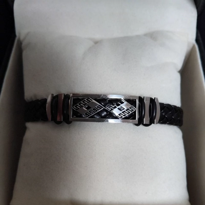 دستبند مردانه چرم بافتی 1