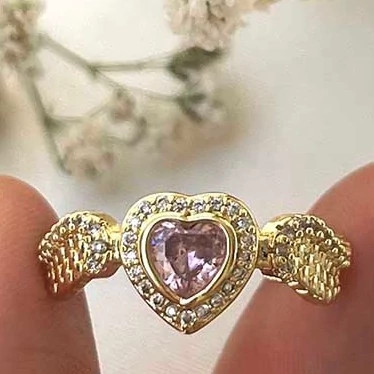 انگشتر زنانه مدل قلب نگیندار استیل رنگ ثابت فری سایز