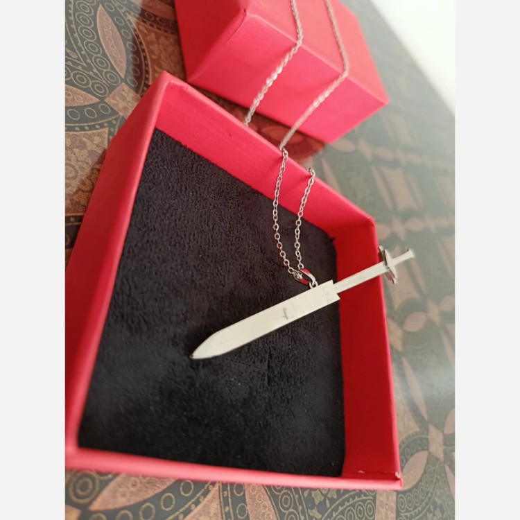 گردنبند مردانه استیل شمشیر سامورایی با غلاف رنگ ثابت
