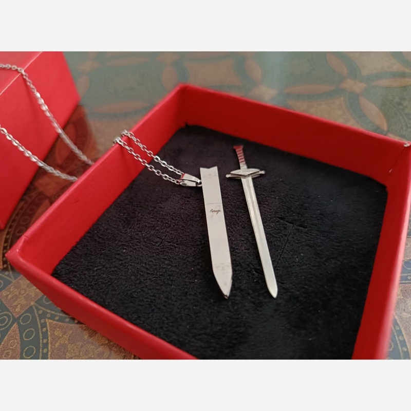 گردنبند مردانه استیل شمشیر سامورایی با غلاف رنگ ثابت