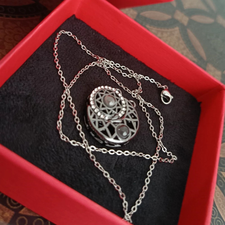 گردنبند ست خورشید و ماه به صد زبان دنیا دوستت دارم استیل رنگ ثابت
