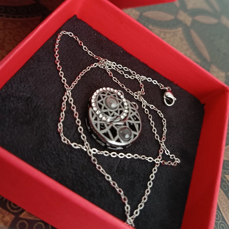 جنس زنجیر: استیل رنگ ثابت طول زنجیر: 50 تا 55 سانتی متر جنس آویز: استیل رنگ ثابت دوستت دارم به زبان های مختلف در دنیا داخل لنز های هر کدوم از آویز ها قابل رویت است